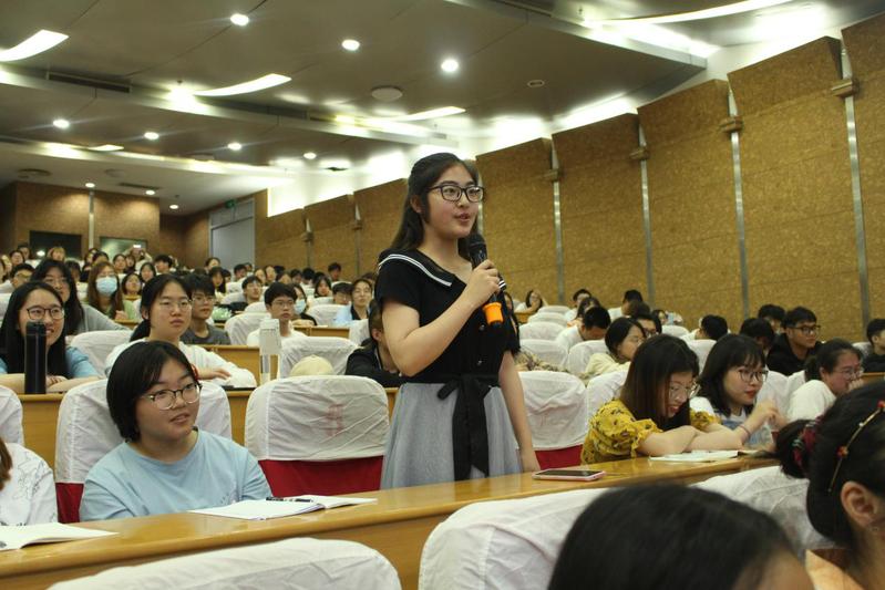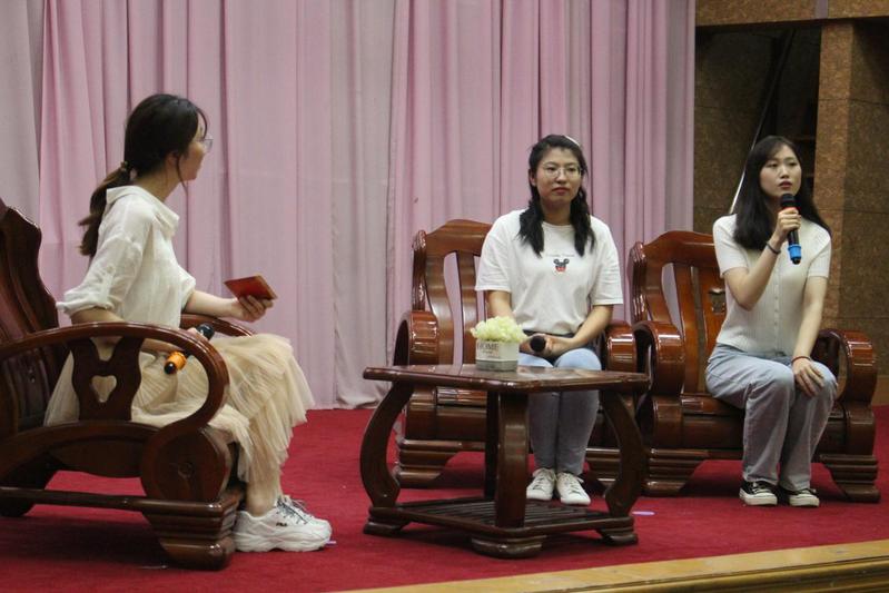 在第一部分“考研”中,王栋和胡心怡向同学们介绍了考研如何择校以及作息和减压方法,让同学们对考研有更深入的了解。会后,一名大一的同学表示:“我还以为考研还离我很远,听了学长学姐的话,让我认识到,要从现在开始打好基础。”