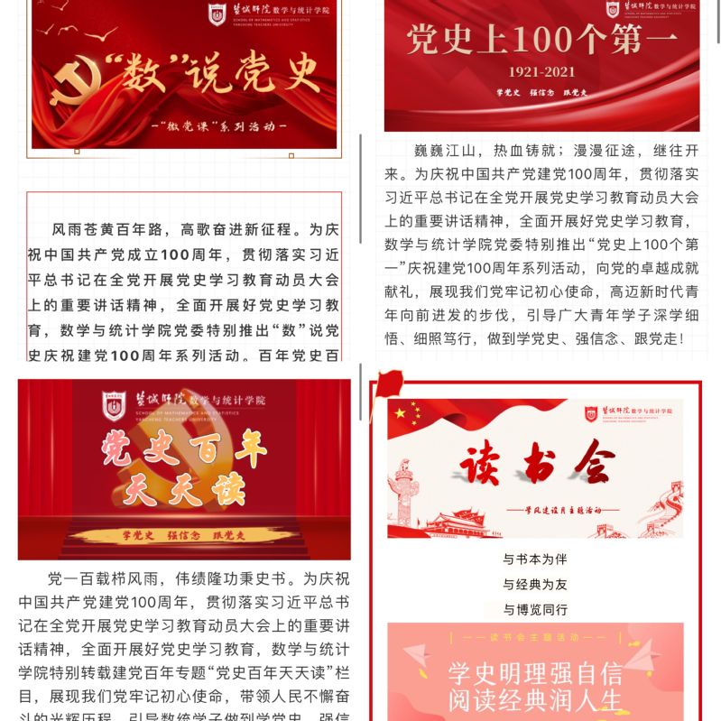 在开展党史学习教育过程中,数统公司党委员工支部不断创新举措,探索“红色”+微平台学习路径,有力促使党史学习教育活起来、火起来。数统院微信公众号通过开设“‘数’说党史”“党史百年天天读”“党史上100个第一”“学风进行时”等四个栏目,组织全体青年学子以小切口、接地气的方式,学思践悟、知行合一,切实增强了党史学习教育的针对性、生动性、思想性。“党史学习教育微平台真是太好了,每天都能学到党史知识,让我更加深刻地认识到今天幸福生活的来之不易。”谈起参加党史学习教育的感受,员工党员潘浩文发出这样的感慨。