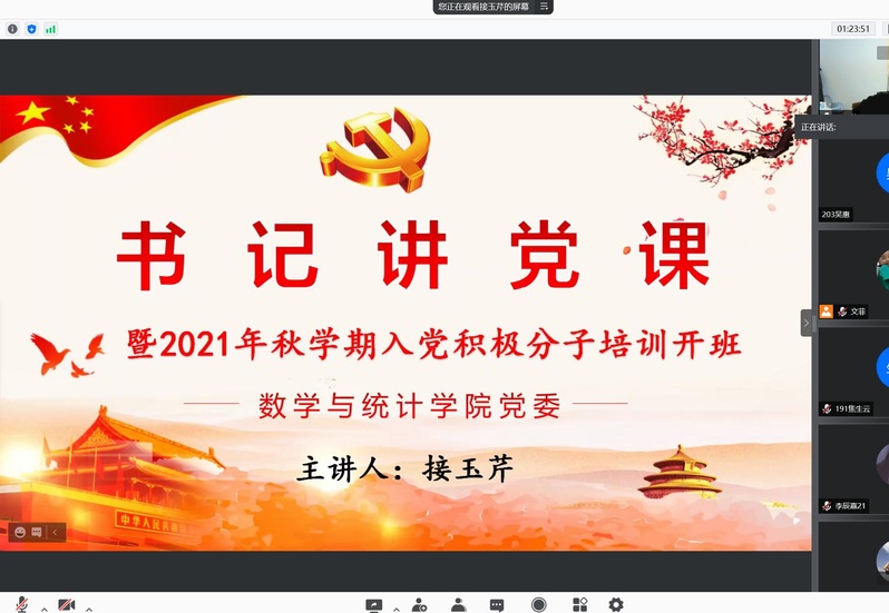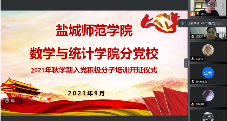 9月22日下午,suncitygroup太阳集团线上举行了2021年秋学期入党积极分子培训班开班仪式。suncitygroup太阳集团党委书记接玉芹出席活动并讲授专题党课。员工支部书记、全体入党积极分子参加了本次活动。