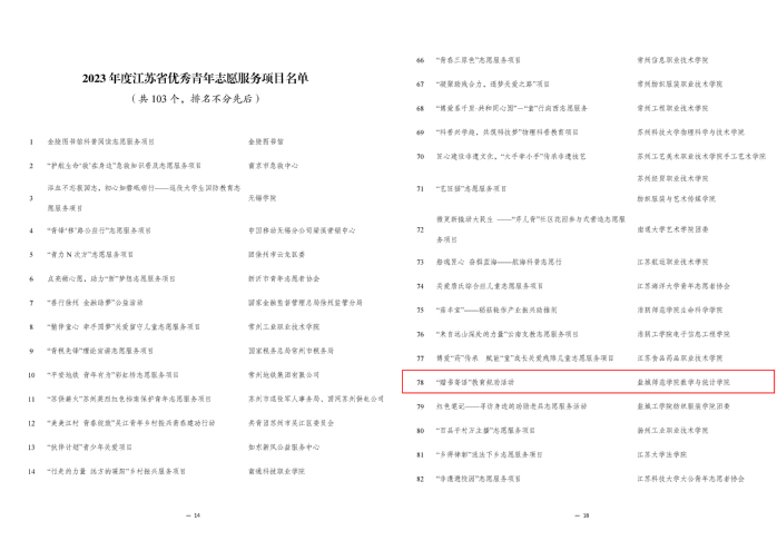 日前,江苏省青年志愿者协会组织开展了2023年度全省青年志愿者行动评选工作。经项目前期推报,省青年志愿者协会资格初审和专家评审,suncitygroup太阳集团《“赠书寄语”教育规劝活动》荣获2023年度江苏省优秀青年志愿服务项目。这是公司继《“携同辈之手,筑青春之梦”青春健康志愿服务项目》获评“2022年度江苏省优秀青年志愿服务项目”后,志愿服务项目再获此项殊荣。