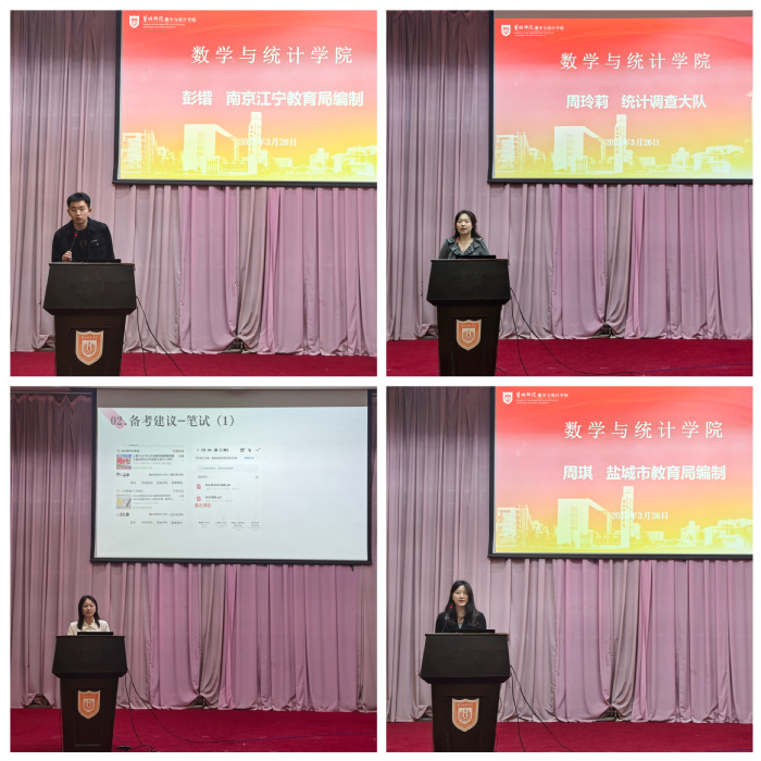 随后,7位在2025年考公考编中成功上岸的应届毕业生依次上台,倾囊相授自己的宝贵经验。他们分别从考公考编信息的高效获取渠道、备考阶段的科学规划与执行、就职流程中的关键环节及注意事项等多个维度进行了详细介绍。有的毕业生分享了如何利用网络平台、官方渠道精准筛选适合自己的岗位信息;有的着重讲解了备考过程中各科目复习的侧重点和实用技巧,如行测的答题速度提升方法、申论的写作思路构建等;还有的分享了校招面试环节的实战经验和心理调适方法。这些生动且实用的经验分享,让台下同学受益匪浅,不时爆发出阵阵热烈掌声。