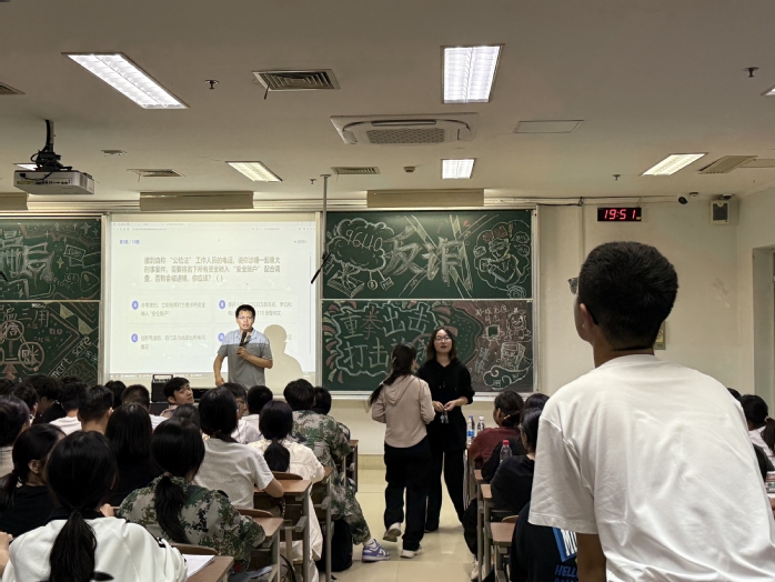 9月20日晚,数统院邀请盐城市公安局亭湖分局反诈中心朱文军警长面向2025级新生开展《谨防电信网络诈骗》专题讲座。讲座涵盖“反诈类型讲解”“受害人访谈评析”“警方反诈提示”等多个维度,向在座的新生进行了生动的“反诈”宣传。借助讲座契机,朱警官特别提示新生同学不要参与“刷单返利”“网络交友”“虚拟账号买卖”等活动,不要贪图小便宜,谨防上当受骗。