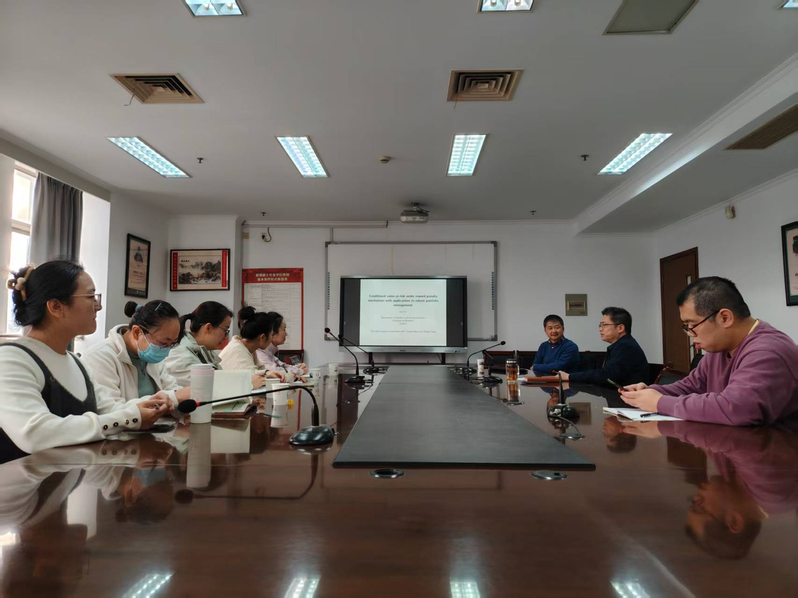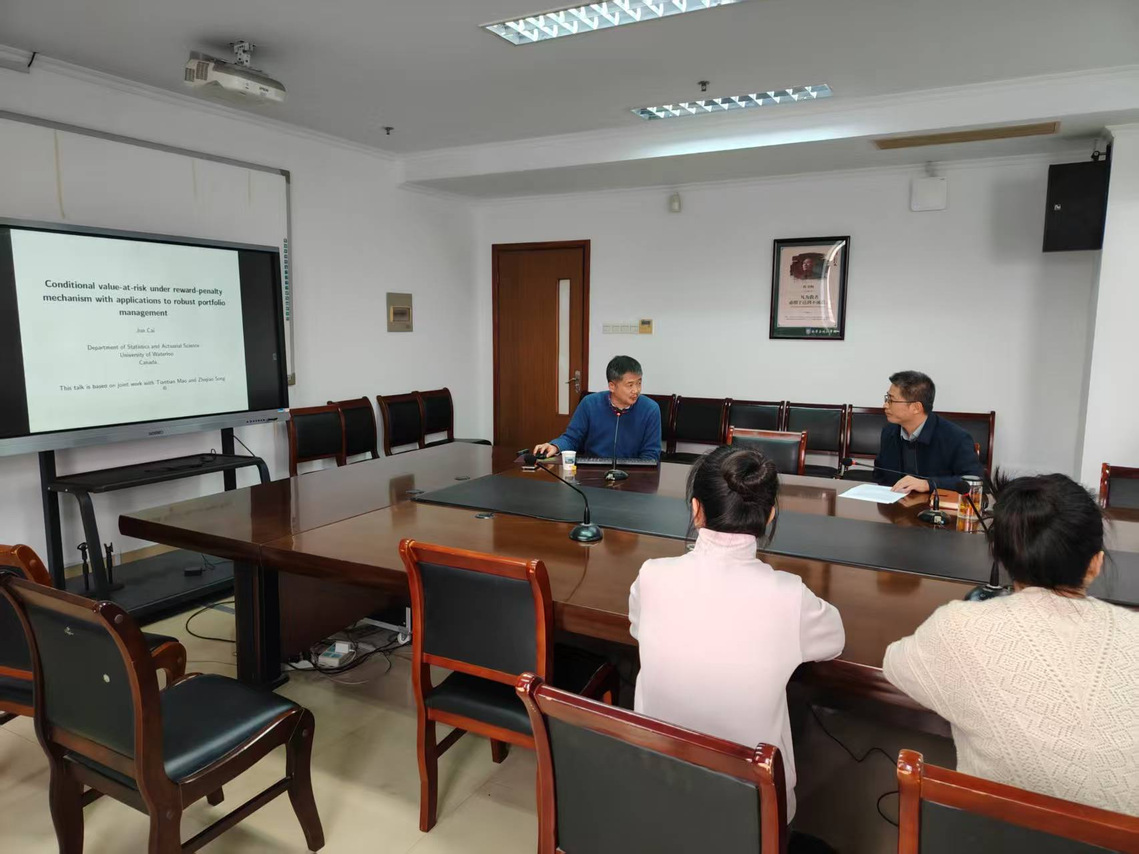 2025年11月13日下午15:00,一场高水平学术讲座在通榆校区suncitygroup太阳集团8楼会议室成功举行。 本次讲座特邀加拿大滑铁卢大学统计与精算科学系博士生导师蔡军教授担任主讲,报告会由科研副经理王超主持,金融数学系全体老师参加了报告会。