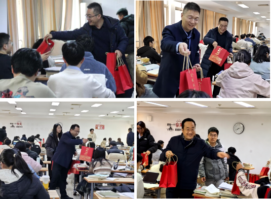 经理王作雷勉励考研学子,考研是意志力与综合能力的全面检验,鼓励大家坚定信念,坚持到底,全力以赴完成最后的冲刺。随后,与会领导和老师们共同为考研学子发放了精心准备的“考研上岸加油包”,每一份礼包都饱含着公司师生最真挚的祝福,为冬日注入了浓浓的暖意。